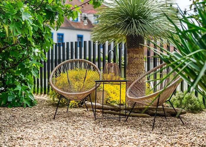 Weniger als 1 km vom Stadtzentrum von Mikulov entfernt, bietet das 1-Zimmer-Palm Garden Apartment 2 Blick auf den Garten. Gönnen Sie sich eine Ruheinsel im Alltag und lassen Sie sich in einem Wasserpark und einem Patio verwöhnen.